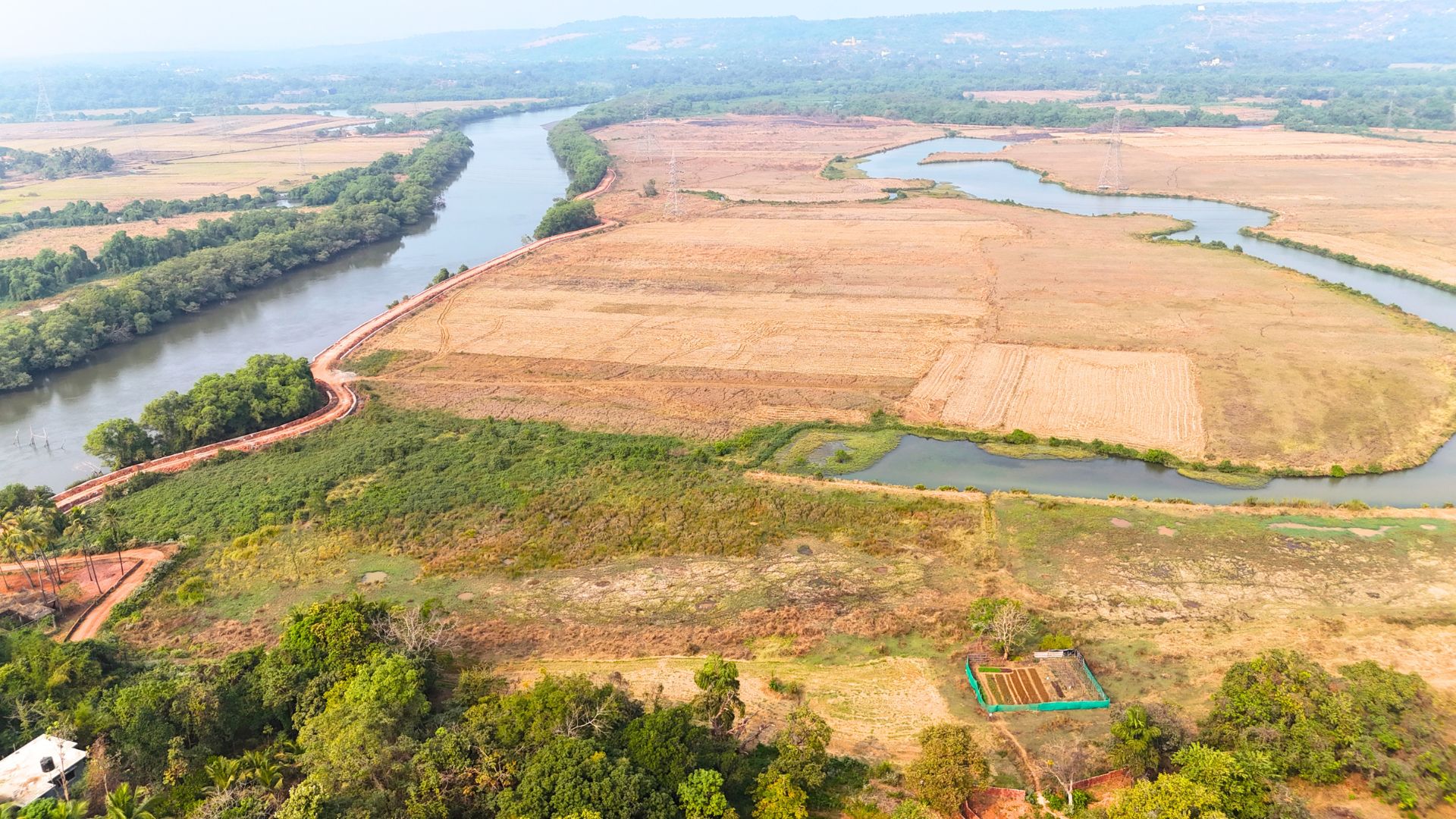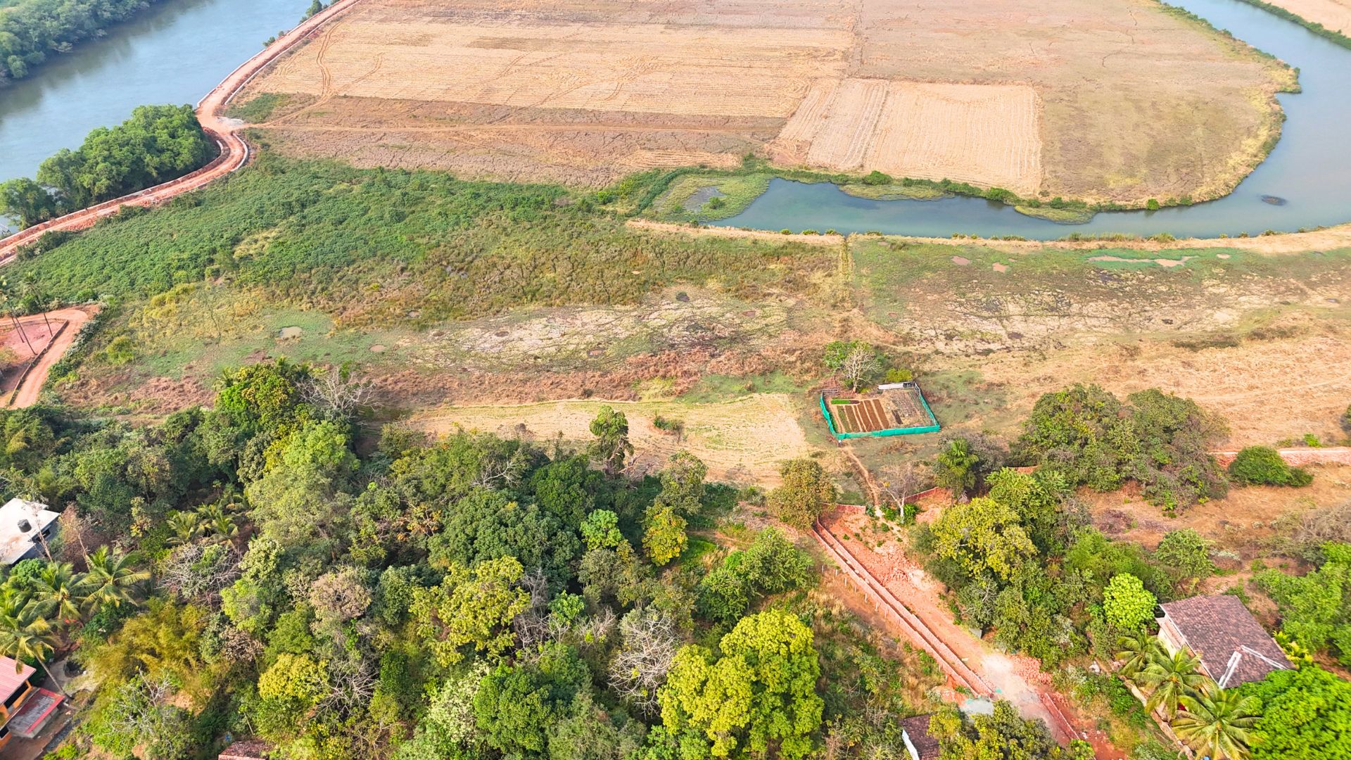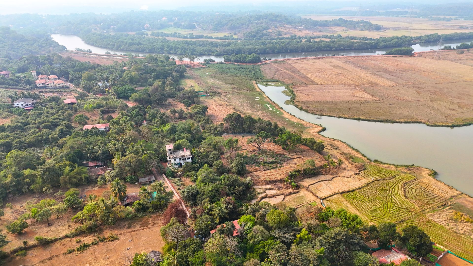 Located in one of the most beautiful area in Goa, this plot in Aldona has spectacular views of the paddy fields and overlooks the river. Aldona is a serene, picturesque village in North Goa known for its lush green, hilly landscape, stunning, riverside views along the Mapusa River, and rich heritage. It offers a tranquil escape with colonial-era Portuguese houses around, the historic 16th-century St. Thomas Church, and the scenic Corjuem Fort.